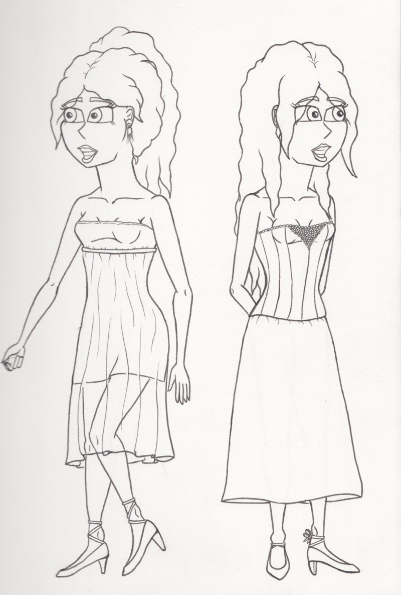 A quick clothing design - I can't decide which dress or hairstyle to give Sammi this episode which takes place at her first big art showing.